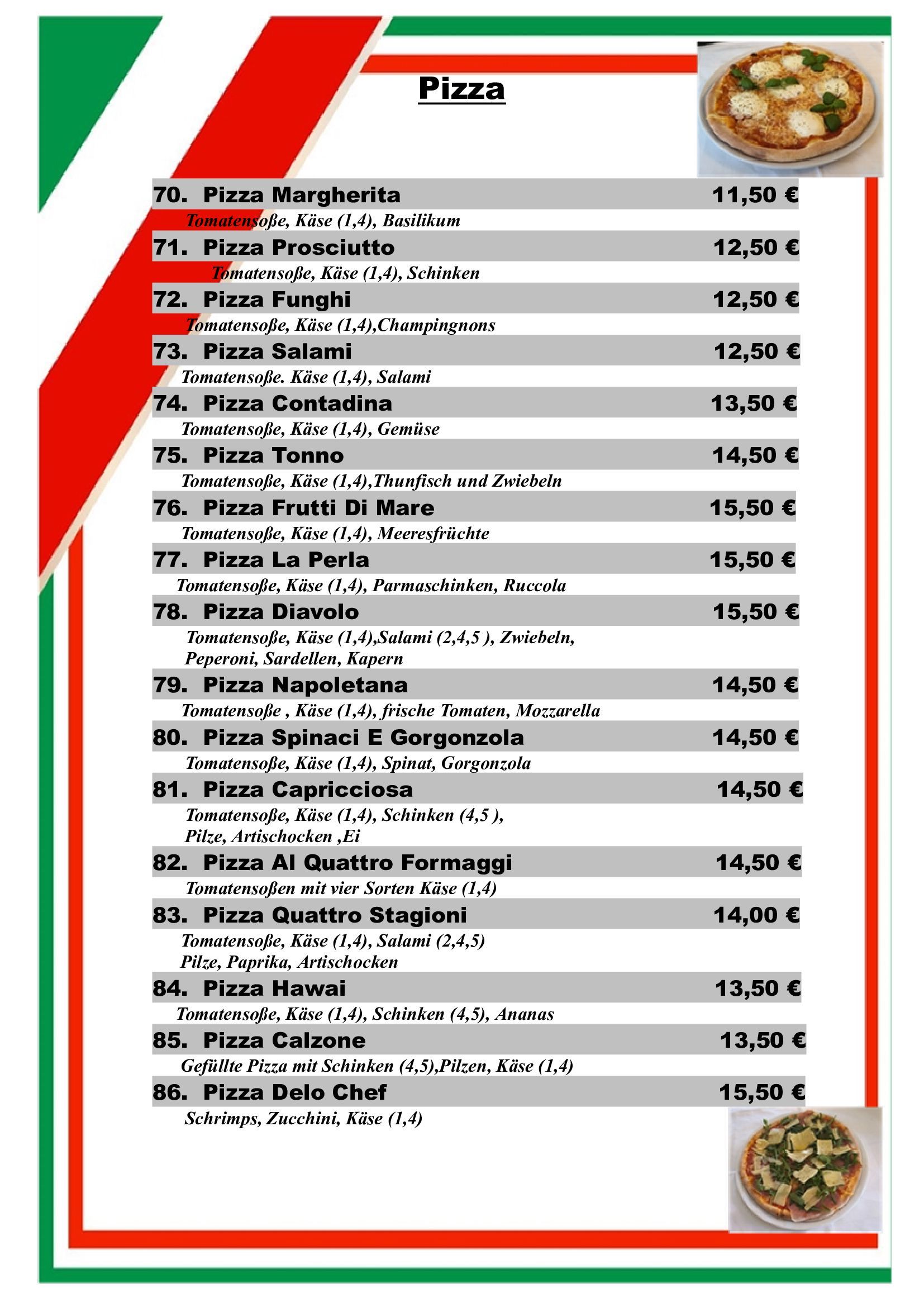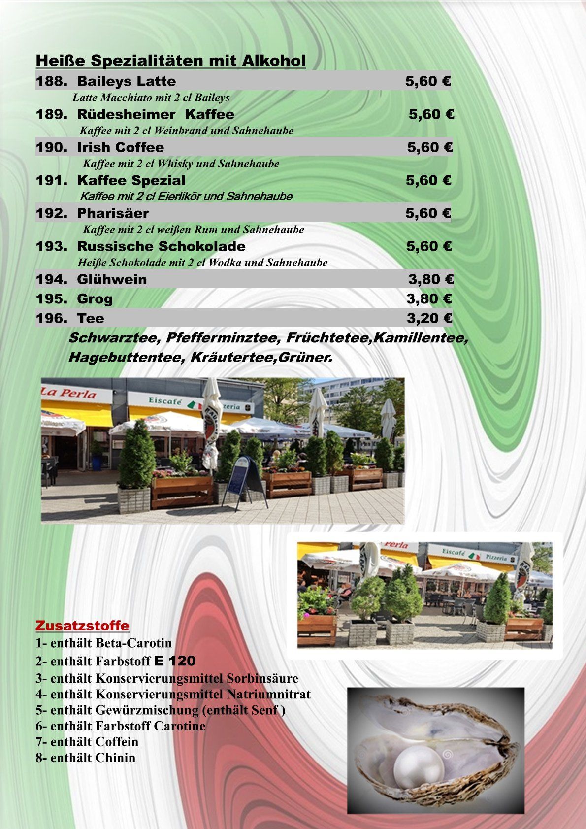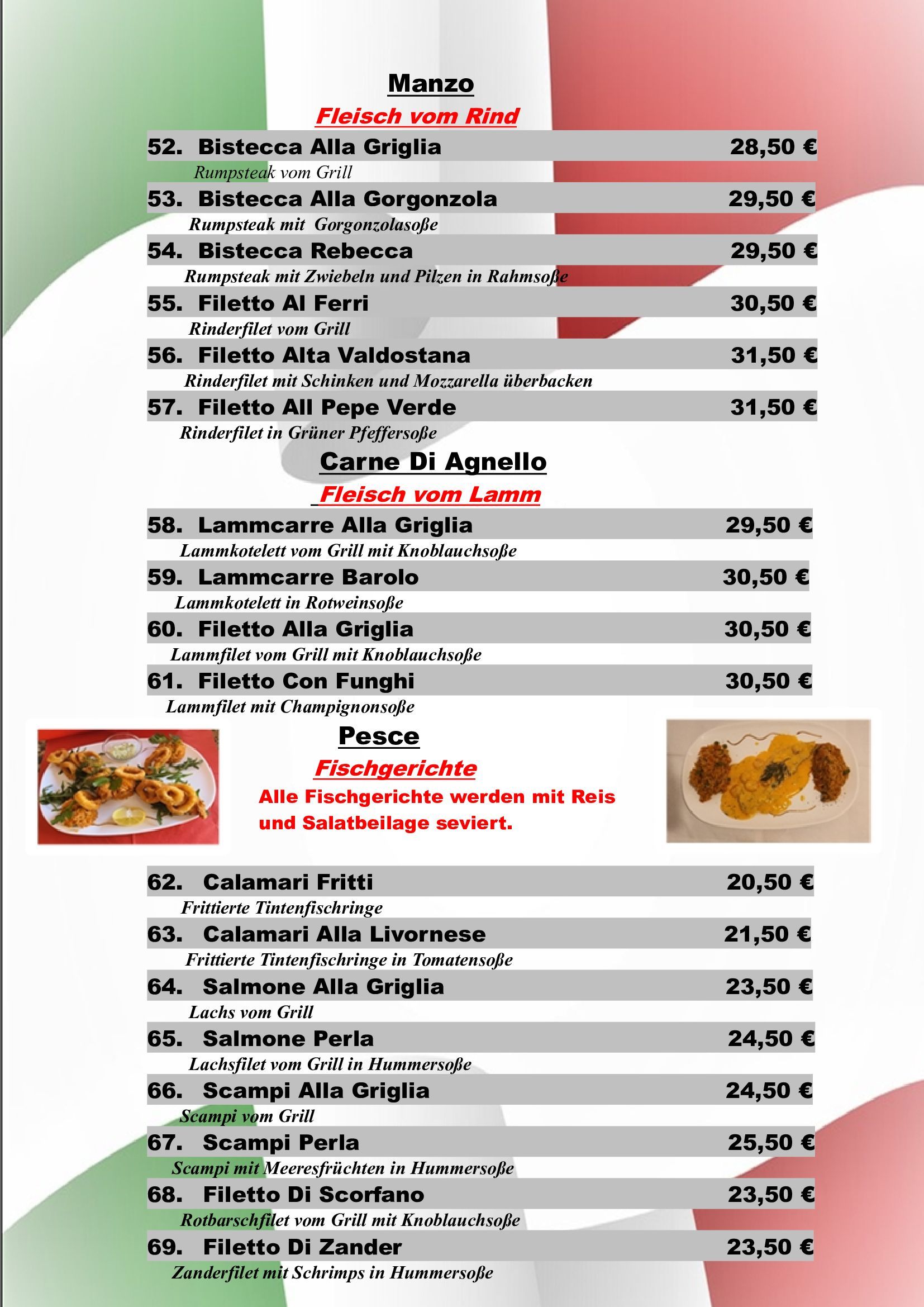 Neben den folgenden Gerichten bieten wir auch Tagesspecials mit saisonalen Zutaten.