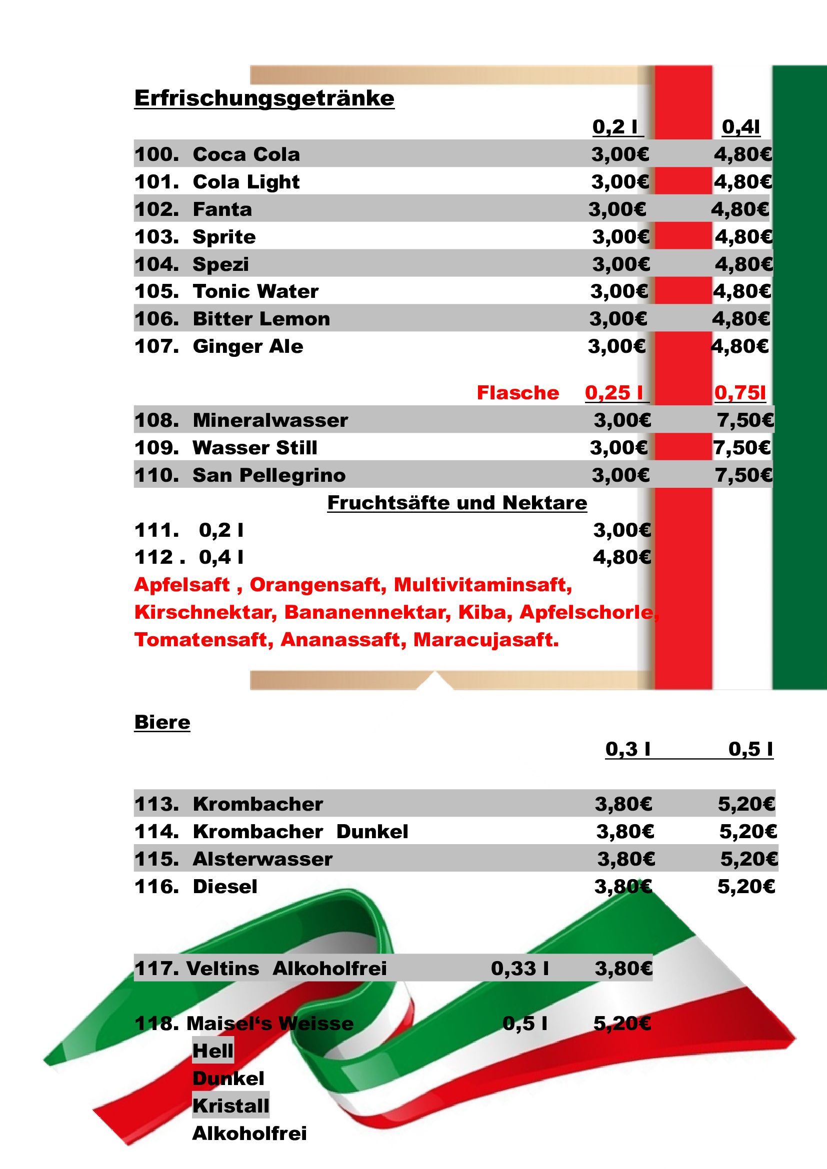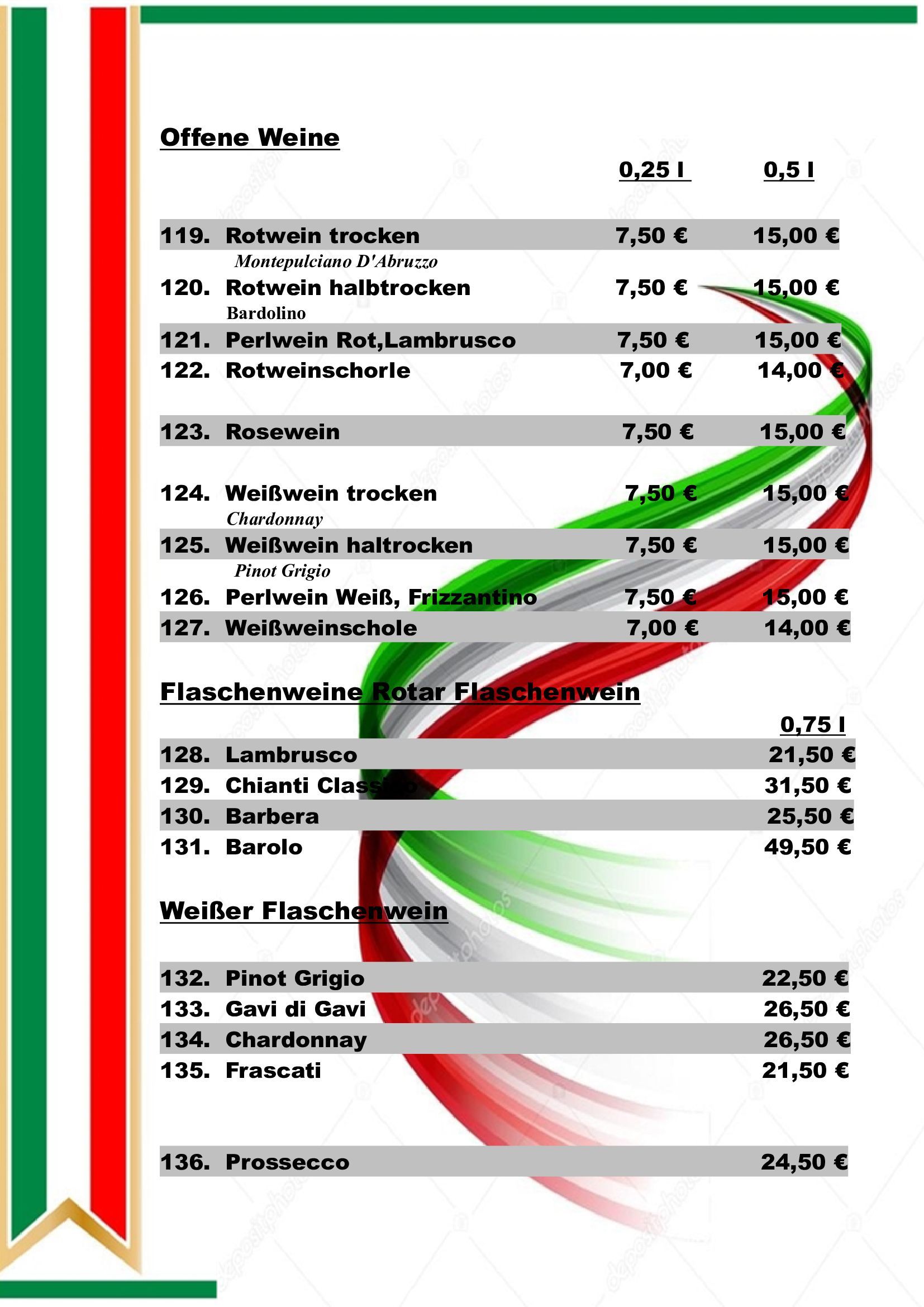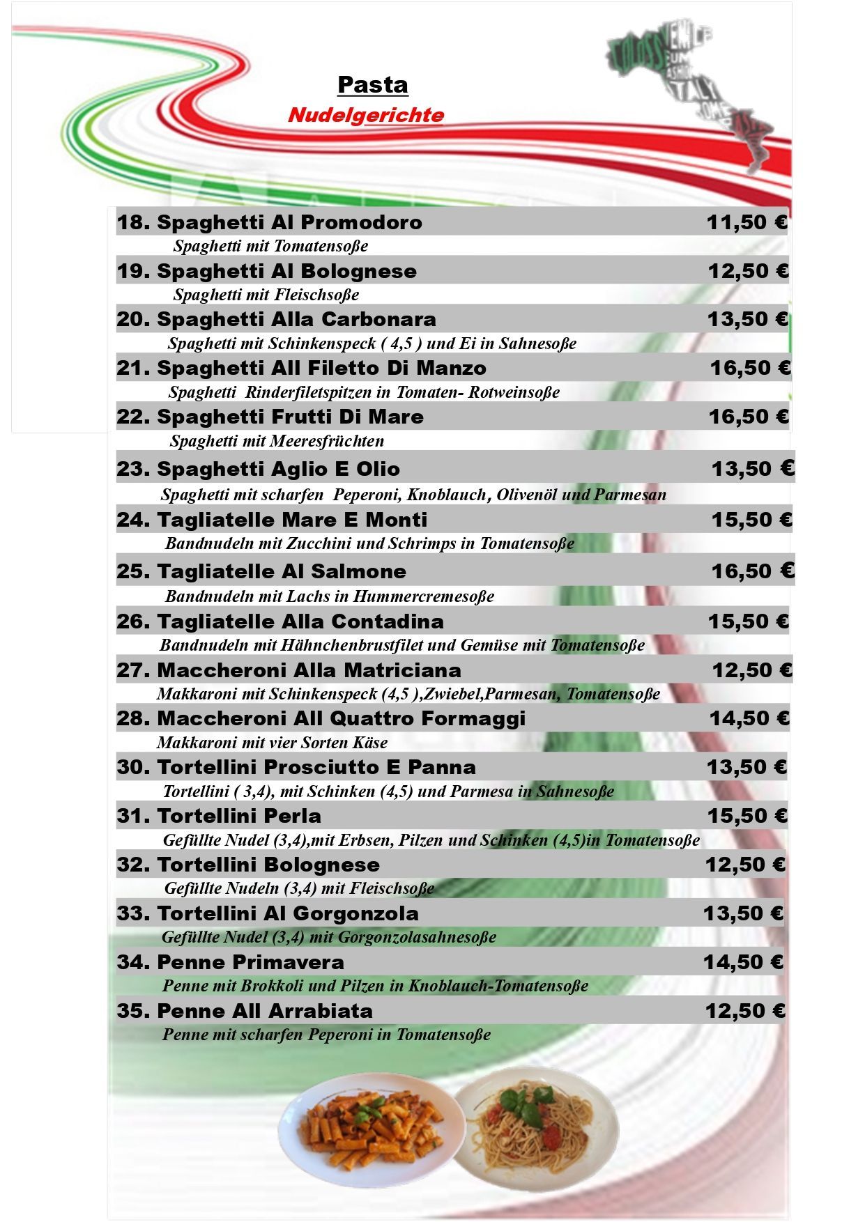 Neben den folgenden Gerichten bieten wir auch Tagesspecials mit saisonalen Zutaten.